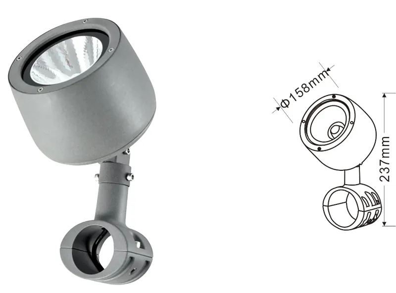 | LED COB Spotlight | Con-tgd08-1 | Ø80*172 mm | 3*3W | Material: Aluminium+Temperiertes Glas Klammertyp: Verstellbar IP: IP67 Farbtemperaturoptionen: 3000k/4000k/6500K RGB/DMX512 (ohne COB) RGBW/DMX512 (ohne COB) Traditionelles Grau, anpassbar, um die Farbe der Gebäudefassaden zu entsprechen |