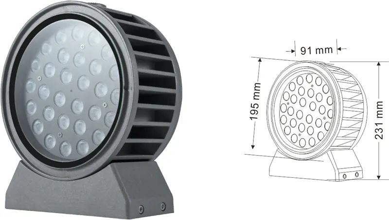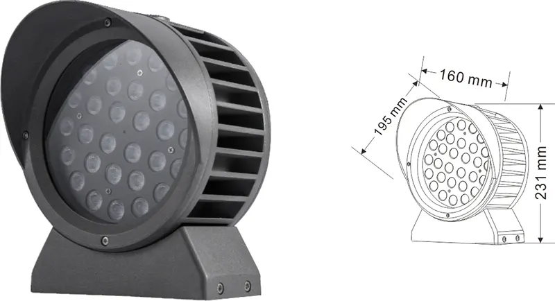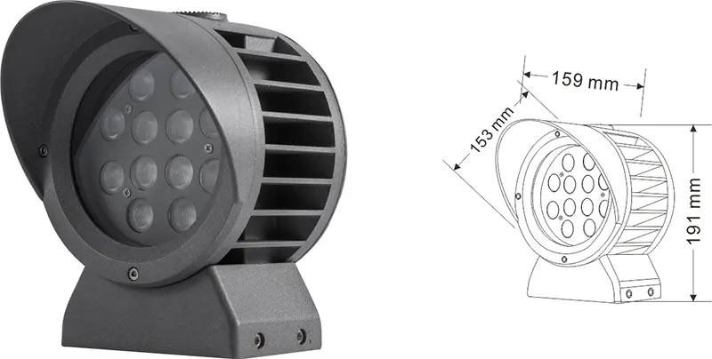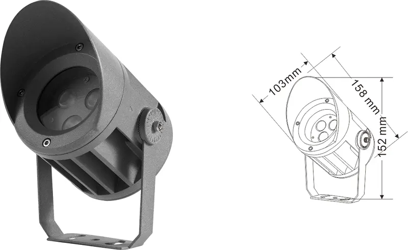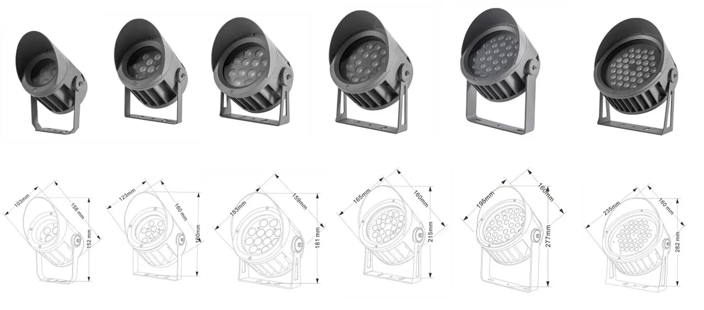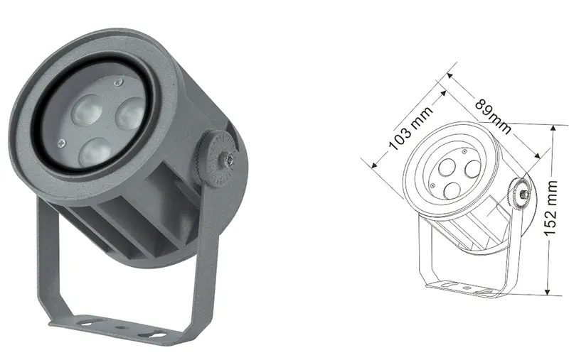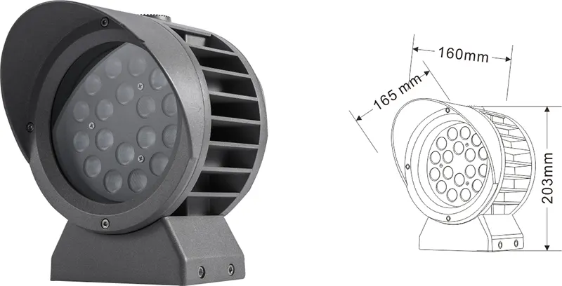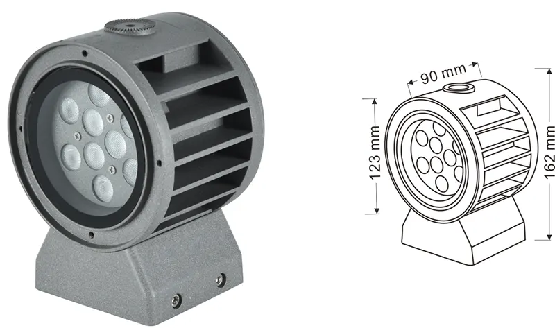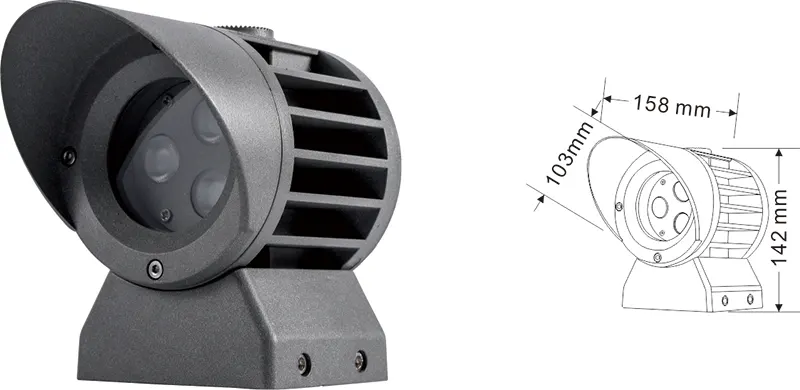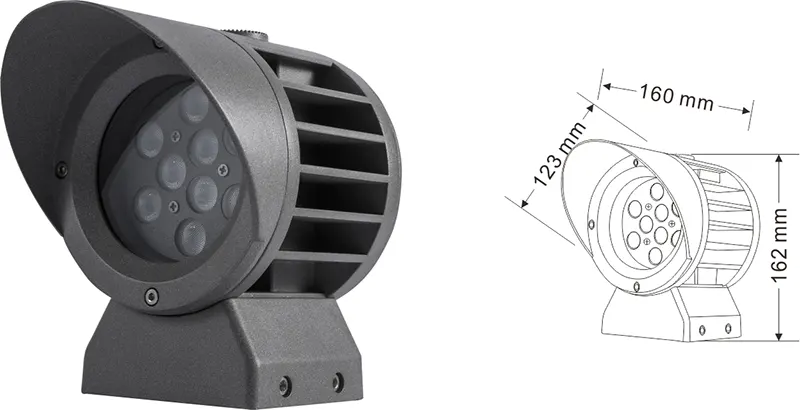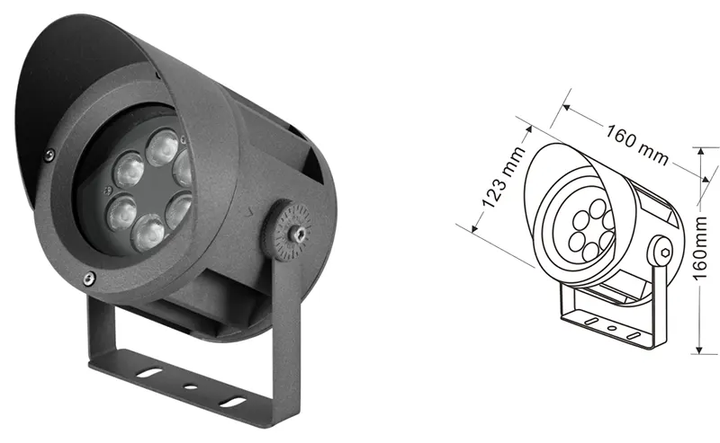 | LED -Fassadenprojektionslicht | Con-tgd02-1 | Φ103*89*H152mm | 3-10 W | Material: Aluminium+Temperiertes Glas Klammertyp: Verstellbar IP: IP67 Farbtemperatur Optional: 3000k/4000k/6500K RGB / DMX512 RGBW / DMX512 Herkömmliches grau, anpassbar für die farbenfarbe der Gebäude passt |