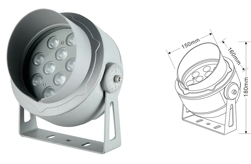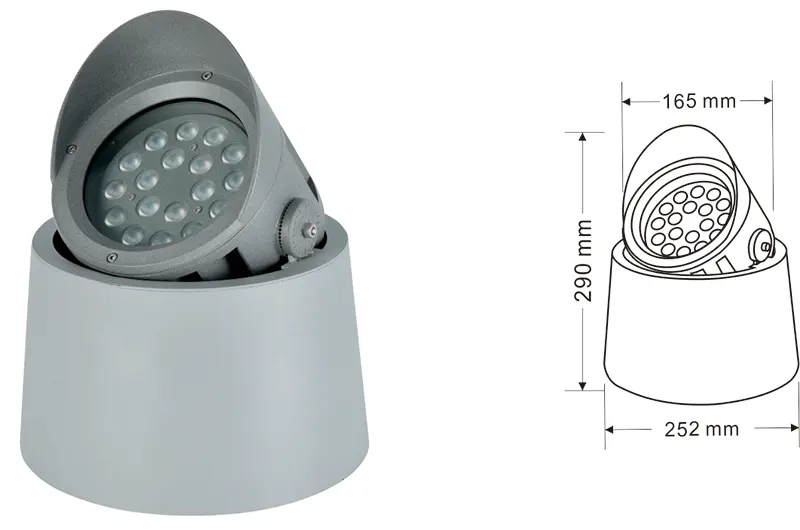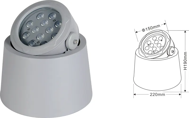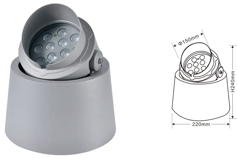 | LED Tree Uplight | Kons-TGD10-1 | Φ150*φ220*H190mm | 12W | Material: Aluminium+Temperiertes Glas Klammertyp: Verstellbar IP: IP67 Farbtemperatur Optional: 3000k/4000k/6500K RGB / DMX512 RGBW / DMX512 Herkömmliches grau, anpassbar für die farbenfarbe der Gebäude passt |