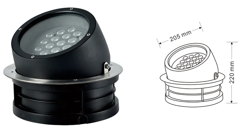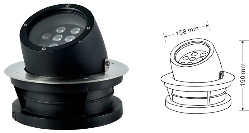Grundverrückte Vorrichtung (IP67) für die Beleuchtung von Baumdachungen nach oben.